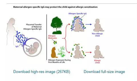原标题:母亲体内的过敏原特异性IgG可保护孩子免受过敏