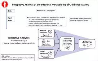 To perform an untargeted integrative analysis of the intestinal metabolome of childhood asthma in this ancillary study of the Vitamin D Antenatal Asthma Reduction Trial (VDAART).